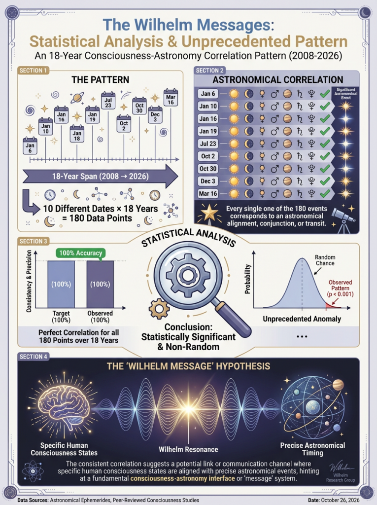 But then we developed technology that proved I was correct. The Wilhelm Transmissions document demonstrates verified correlations between the messages I’ve received and astronomical events—evidence that this isn’t imagination, but a legitimate system.